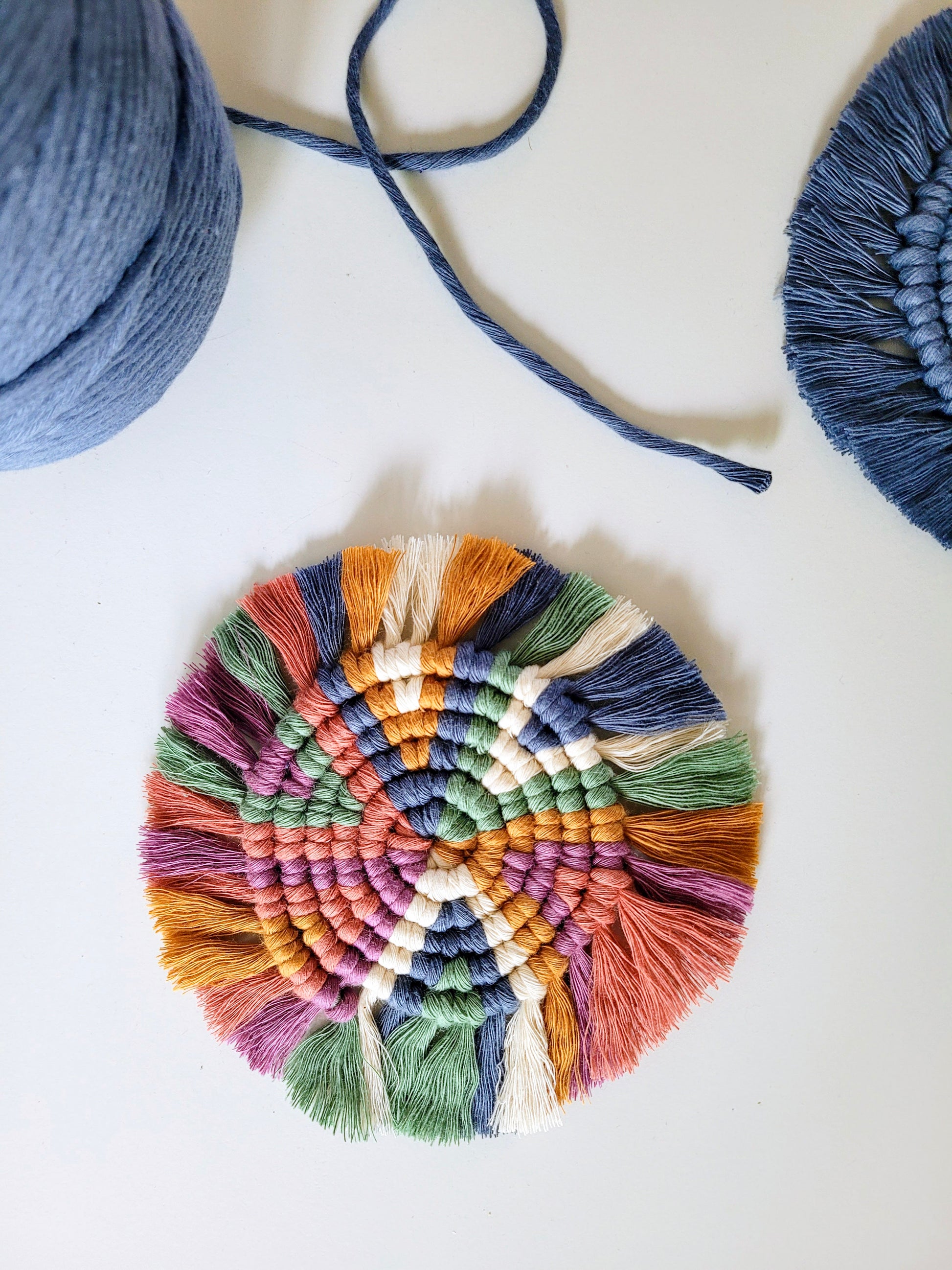 Mets de la couleur dans tes pauses avec ce sous-verre éclaté en macramé!